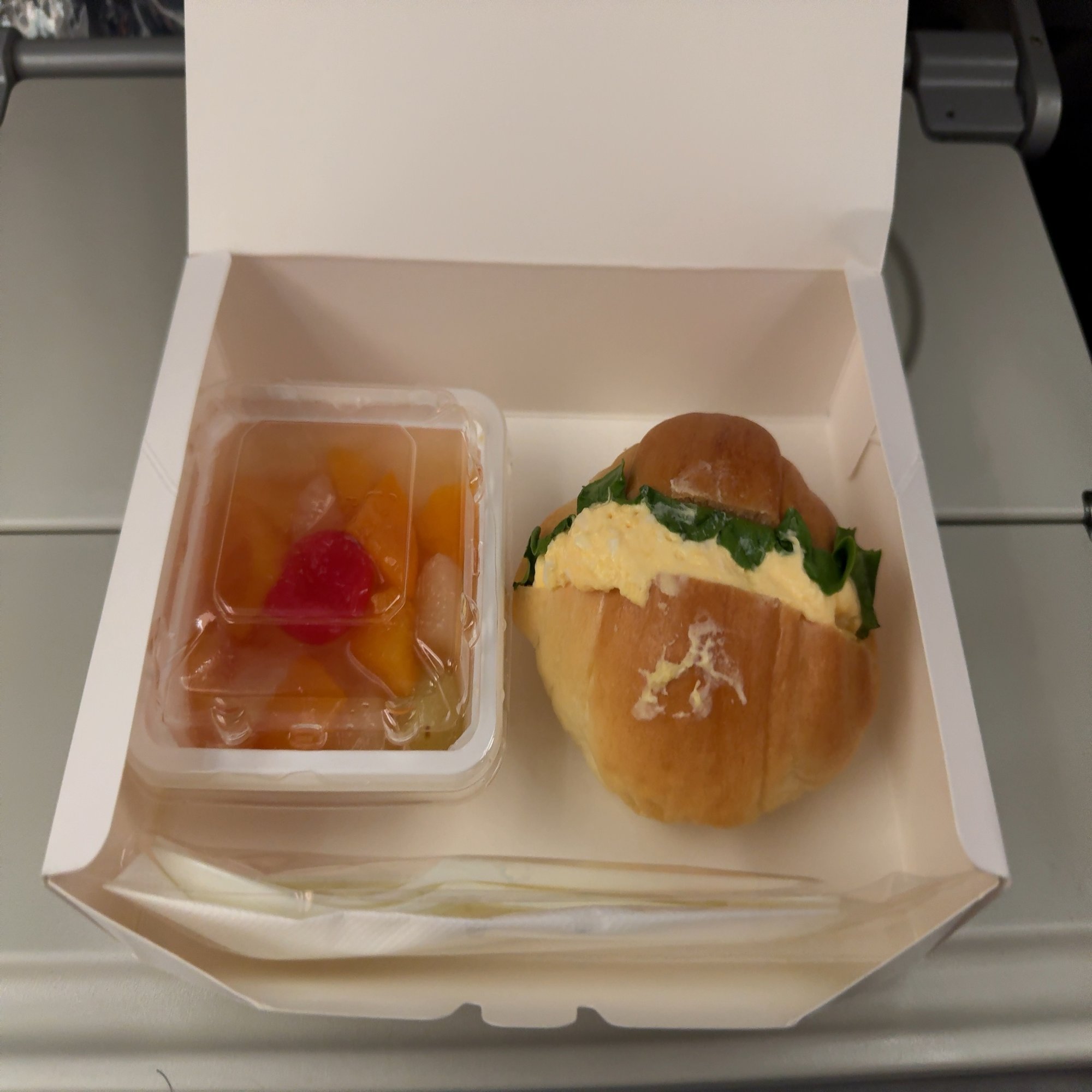 6:00 A.M. 朝食(たまごサンド、フルーツポンチ)