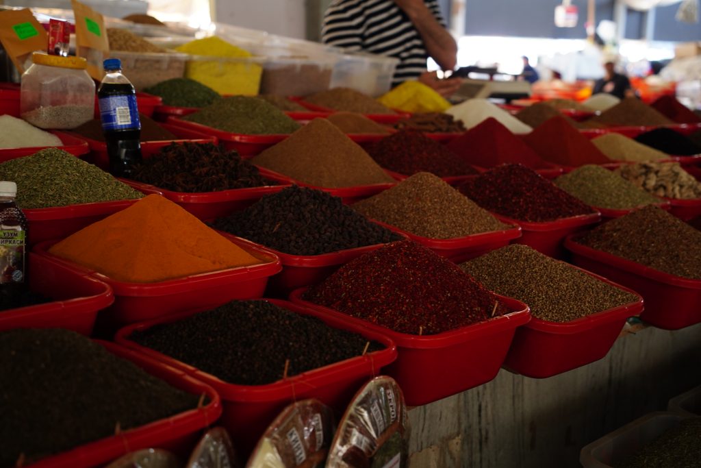 ウズベキスタンはスパイスも有名です。マーケットに行くと必ずと言っていいほどスパイスのエリアがあり、その香りの強さに驚かされます。
