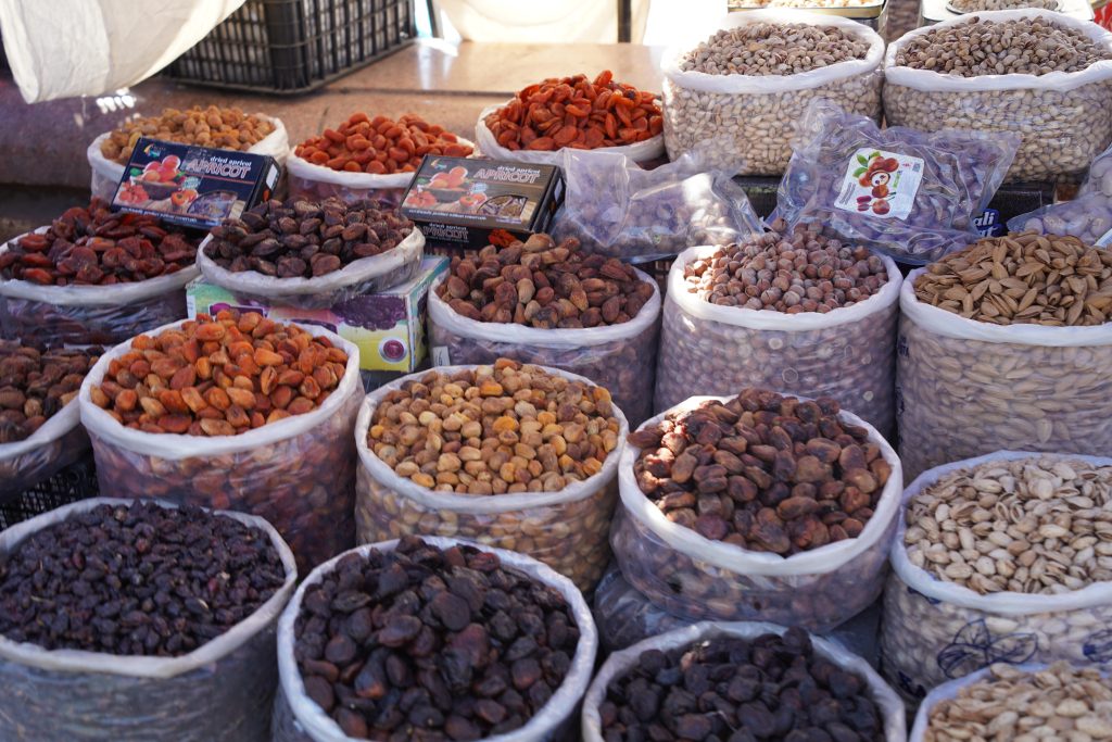 ウズベキスタンでは果物がたくさん採れるので、ドライフルーツも豊富です。