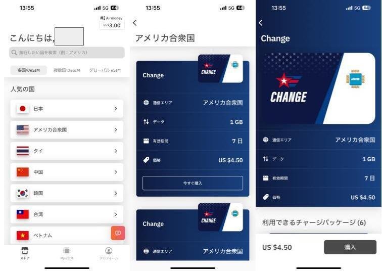 ここではAiraloでのesim購入方法を実際の画面を使って解説します。