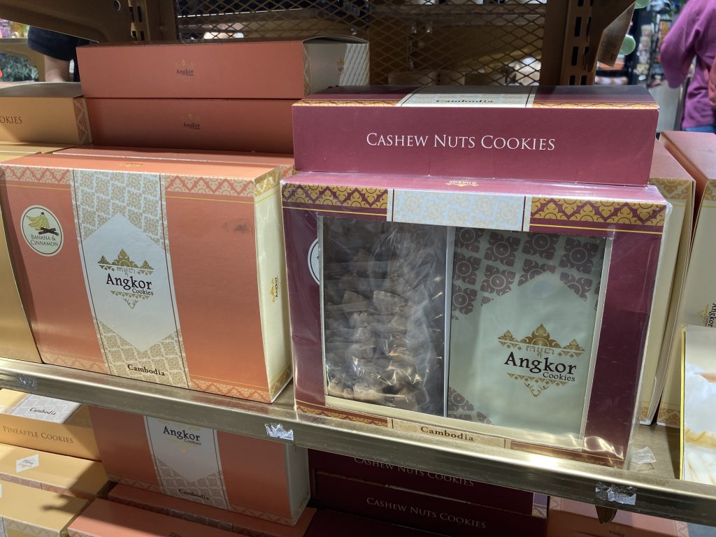 制限エリア内の土産物屋「AMAZING CAMBODIA」ではカンボジアのお土産が多く揃っていました。主に食べ物、置物、イラストが売られていました。置物は街の2-3倍程度しましたが、クオリティはその分高かったです。