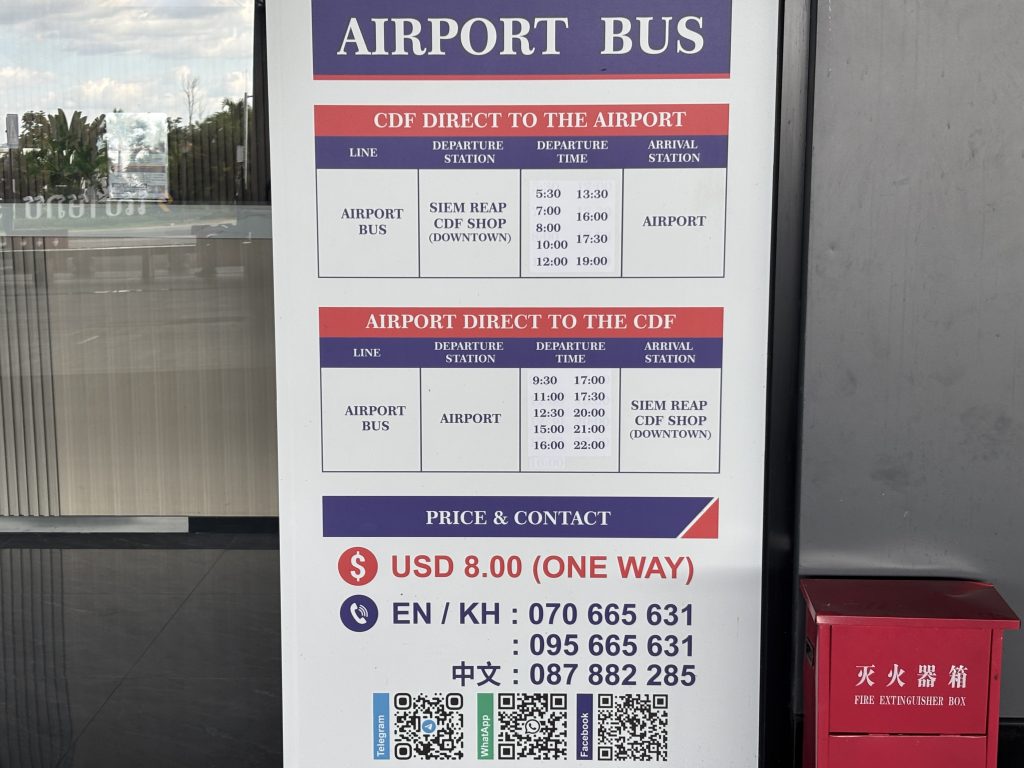 シェムリアップ国際空港から市内までは40分-50分程度かかります。交通手段としてはバスかタクシー、ホテル送迎の三つの選択肢があります。おすすめは人数と旅行経験、予算によって変わりますが基本はバスをお勧めします。バスはぼったくられる心配がなく確実に市内まで行くことができます。ただ1時間-1時間30分に一本程度と時間によっては不便なこともあるので他の選択肢を検討してもいいでしょう。