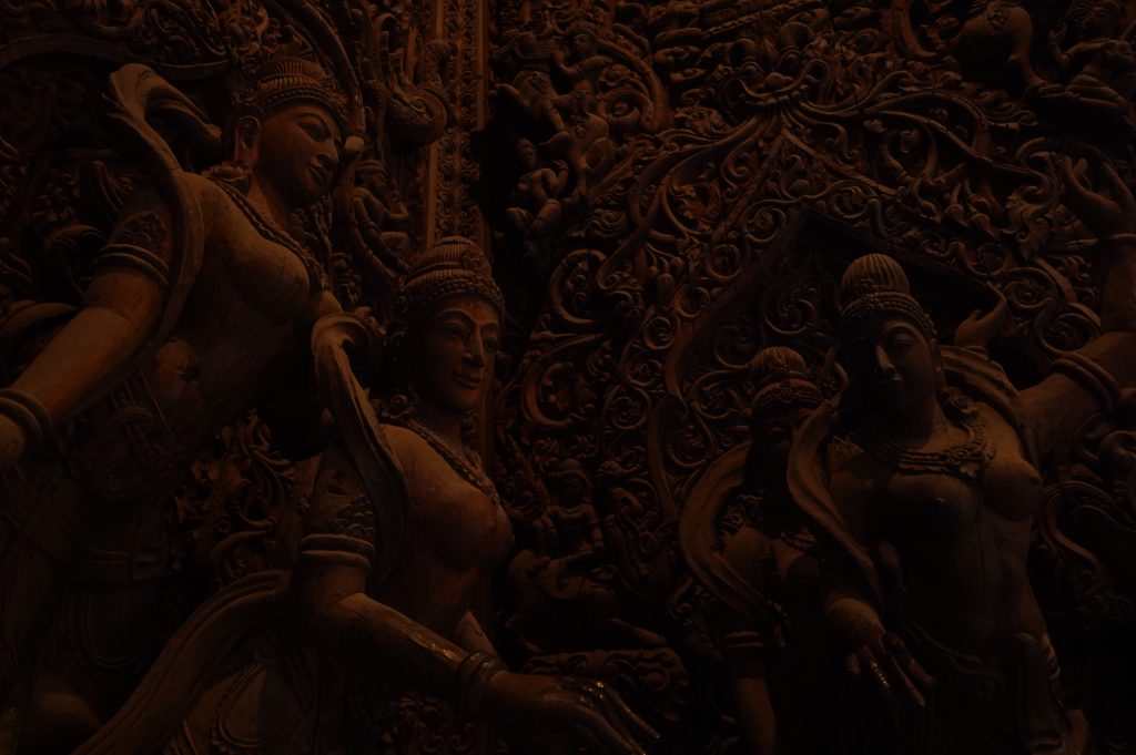 サンクチュアリオブトゥルースの内部には多くの神々の像があります。タイの仏教、インドのヒンドゥー教、カンボジアの神様などさまざまな神様がごちゃ混ぜになっている様子は、サンクチュアリオブトゥルース(真実の聖域)ならではと言えるでしょう。