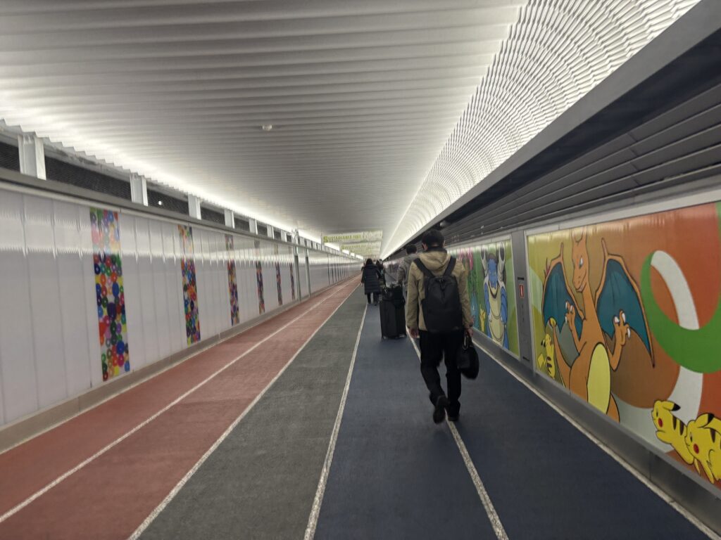 出発は第三ターミナルなので「成田空港第二ターミナル駅」から10分程度歩きます。