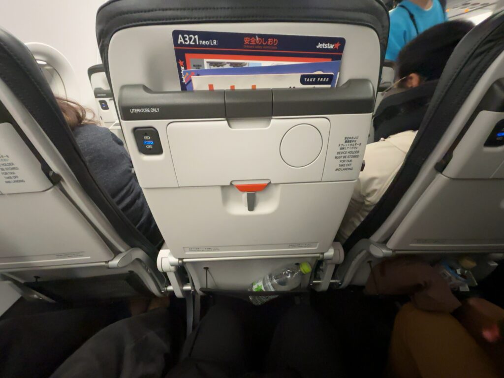 足元もそこまで狭くないのでLCCにしては快適。