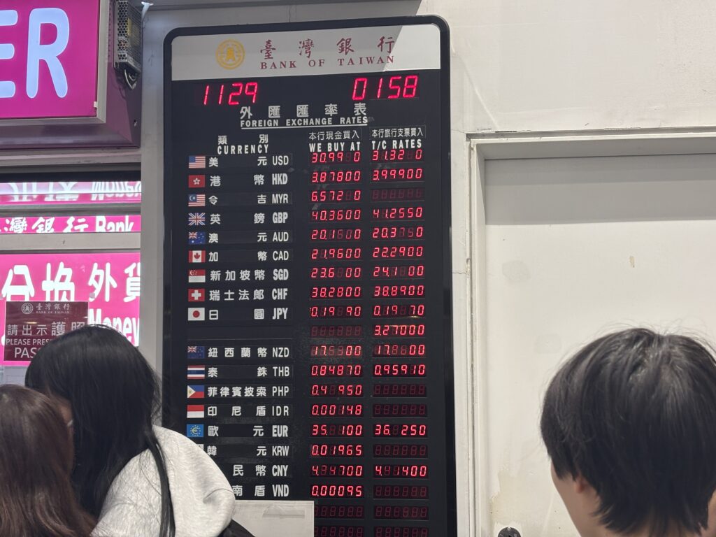 ただし台湾は現金がまだまだ残っている部分もあり特に市場などでは利用する機会もあります。土日は街中の銀行は営業しておらず、「昇祥茶行」などで両替することになるので、少し不便かも